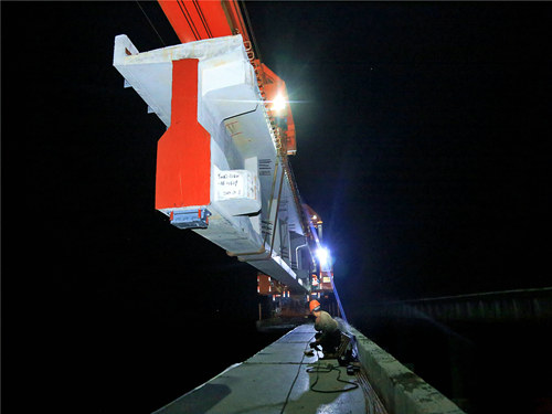 自10月19日開始架設(shè)該特大橋以來,全體參建人員在克服重慶地區(qū)秋分時節(jié)多雨大霧、施工地段窄小濕滑、移梁施工工藝繁瑣、安全生產(chǎn)風(fēng)險(xiǎn)大等系列困難的前提下,嚴(yán)格執(zhí)行成都局集團(tuán)臨近既有線施工相關(guān)規(guī)定,大力優(yōu)化運(yùn)梁架梁方案,合理優(yōu)化施工組織結(jié)構(gòu),并結(jié)合天氣情況,第一時間倒排鋪架工期,及時做好現(xiàn)場機(jī)械設(shè)備與人員的調(diào)配等,最終在保工程質(zhì)量、施工安全、環(huán)境保護(hù)的前提下,確保了既定節(jié)點(diǎn)目標(biāo)順利實(shí)現(xiàn)。