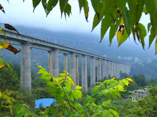 據(jù)中鐵一局鋪架項(xiàng)目部負(fù)責(zé)人介紹,狗耳泉特大橋位于重慶市彭水自治縣四方村境內(nèi),該橋全長1156.47米,共有36個橋墩,需架設(shè)T梁35孔,在建橋梁距既有線5—20米不等,最高墩臺為68米,是該條鐵路的重難點(diǎn)工程,同時也為建設(shè)中的渝懷鐵路涪秀二線管內(nèi)最后一座特大橋。