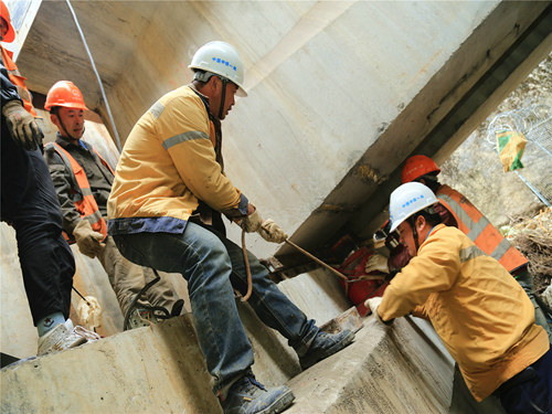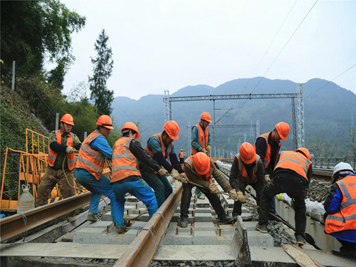 期間,為確保移梁施工安全有序進(jìn)行,項(xiàng)目部統(tǒng)籌規(guī)劃,科學(xué)部署,第一時(shí)間指派分管領(lǐng)導(dǎo)深入現(xiàn)場開展調(diào)查,隨后根據(jù)調(diào)查結(jié)果研究制定移梁作業(yè)方案。移梁過程中,工人們嚴(yán)格按照前期技術(shù)交底及安全規(guī)定,尋尋有序地開展線路拆除,蓋板支座切割,滑道安放及移梁線路恢復(fù)等作業(yè)環(huán)節(jié)。并且在搶抓施工進(jìn)度的同時(shí),緊抓安全質(zhì)量不放松,嚴(yán)格落實(shí)施工有方案,技術(shù)有交底,工序有檢查,安全有卡控的工作方針,最終在20余名人員7天的不懈努力下,全線移梁施工完美告捷,為該條鐵路石子壩至中嘴段的按期開通運(yùn)營提供了堅(jiān)實(shí)保障。