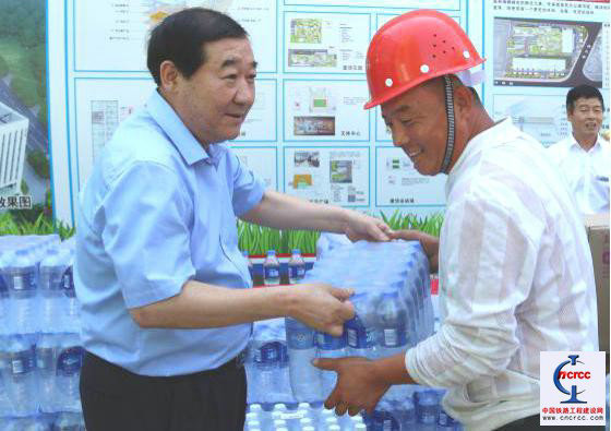 圖二、集團公司吳建順書記為一線工人發(fā)放清涼物品