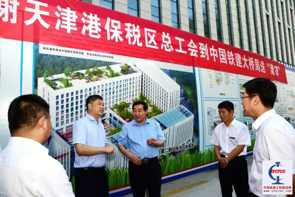 8月21日上午,天津港保稅區(qū)總工會主席王硯清帶領(lǐng)保稅區(qū)總工會工作人員來到天津鐵建大廈二期工程項目工地進行慰問,為奮戰(zhàn)在施工一線的員工送上清涼飲品。中國鐵建大橋局集團黨委書記、董事長吳建順代表集團公司對王主席一行表示熱烈的歡迎和衷心的感謝。