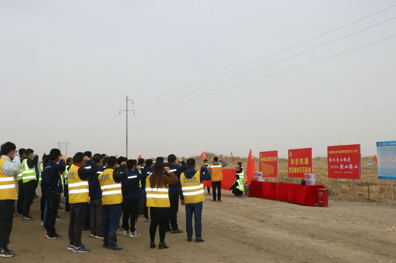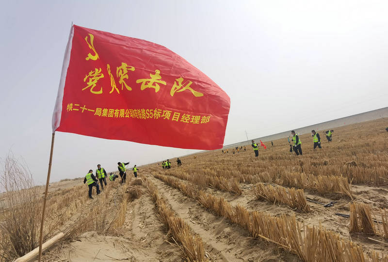 4月8日上午,和若鐵路各參建單位在中鐵二十一局集團(tuán)和若鐵路S5標(biāo)管段范圍內(nèi)的風(fēng)沙防護(hù)植物種植區(qū)域的黨員示范種植區(qū),開展了“我為和若鐵路造林防沙,讓黨旗在防風(fēng)固沙一線高高飄揚(yáng)”為主題的義務(wù)植樹暨主題黨日活動。