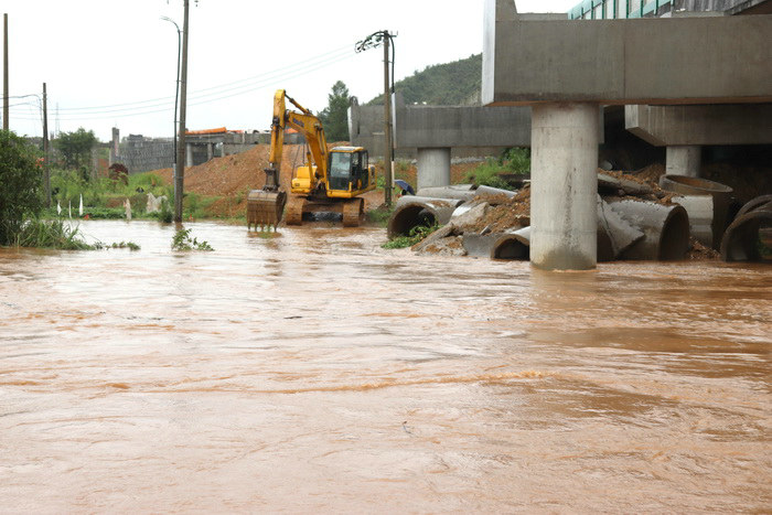 為了全力以赴做好防洪防汛,面對短短一小時就達到100多毫米的強降雨,為保障參建員工生命財產(chǎn)安全,防洪防汛領(lǐng)導(dǎo)小組堅持“生命至上、安全第一”的理念,冒著大雨,按照防洪度汛預(yù)案要求,對河道進行排澇疏浚清淤雜物,采取避災(zāi)措施,迅速轉(zhuǎn)移機械設(shè)備、物資材料,對低洼地帶、易澇地帶采取圍堰措施,同時加強重點部位值班值守,對邊坡塌方滑坡地帶及時用挖機清理,保障道路暢通和出行安全。