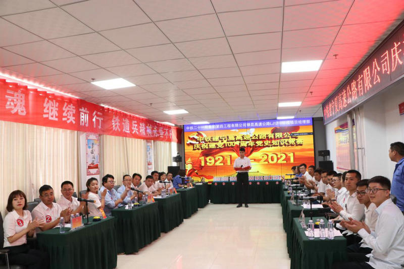 為隆重慶祝黨的100周年華誕,引導(dǎo)廣大黨員干部學(xué)史明理、學(xué)史增信、學(xué)史崇德、學(xué)史力行。6月23日至25日,中鐵二十一局銀昆高速公路LJ12-2標(biāo)項(xiàng)目經(jīng)理部成功承辦中鐵建寧夏高速公路有限公司黨史知識(shí)競(jìng)賽初賽、首屆銀昆杯D組籃球賽。