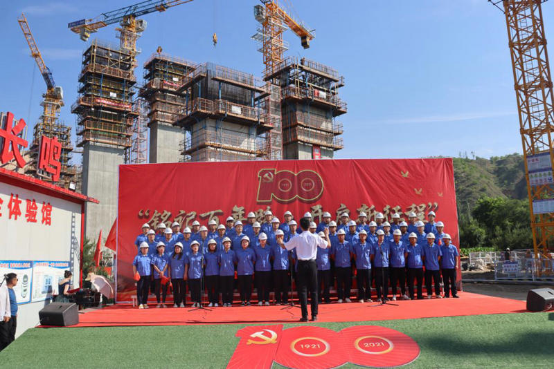 活動開始前,鄧中奇和杜長松分別進行了致辭。演出在集體合唱《沒有共產(chǎn)黨就沒有新中國》的激越歌聲中拉開序幕,詩朗誦《相約第100個春天》、《我是鐵建人》,獨唱《把一切獻(xiàn)給黨》、情景劇《回族兒女跟黨走》、對唱《美麗的神話》、群舞《洗衣歌》、三句半《工地是我家幸福千萬家》,一個個精彩的演繹給久居工地的建設(shè)者們帶來了美麗與藝術(shù)的享受,傳遞著新時代的氣息和奮進的力量,讓他們近距離領(lǐng)略了文化藝術(shù)的魅力。最后,演出在大合唱《我和我的祖國》的嘹亮歌聲中圓滿落幕。