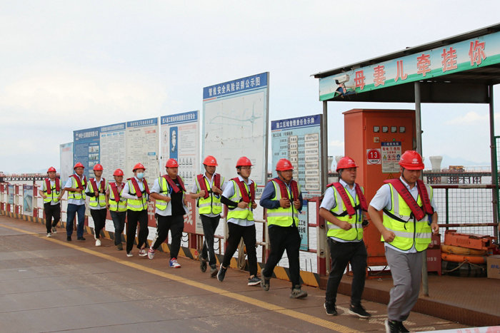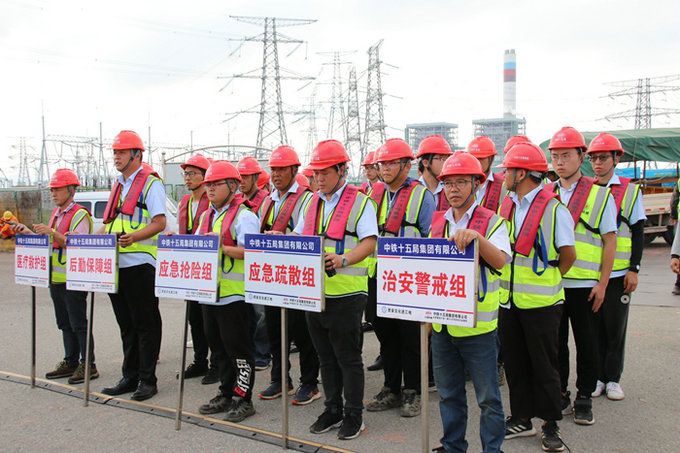 同時,項目部組織進行了兩天半時間的預(yù)演,全體人員服從指揮,不怕苦不怕累,不厭其煩地一遍遍排練,為演練的成功做了充分準(zhǔn)備。29日下午3點,杭甬項目防汛防臺風(fēng)應(yīng)急演練大幕正式拉開。各小組人員冒著酷暑,按照總指揮的指令分步驟實施。首先是搶險組切斷配電箱電源,將閘刀安全拉下,然后是用扳手、鋼絲繩等加固筒子樓梯,汽車吊長臂收回平穩(wěn)落下。其次,接到總指揮指令,有人員受傷,需要救護,醫(yī)療救護小組火速帶上擔(dān)架快速乘車到達地點,對受傷者進行包扎,然后抬上擔(dān)架,上車駛離現(xiàn)場。而應(yīng)急疏散組迅速組織人員撤到安全地帶。整個演練過程有條不紊、銜接緊密,并在大屏幕上進行了精彩的現(xiàn)場直播。