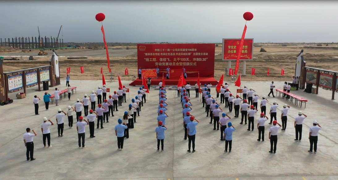 為激發(fā)公司全體干部職工大干快上的勞動(dòng)熱情,加快阿拉爾片區(qū)項(xiàng)目施工進(jìn)度。6月29日,中鐵二十一局一公司在新疆生產(chǎn)建設(shè)兵團(tuán)第一師阿拉爾市開(kāi)展“繼承革命傳統(tǒng) 傳承紅色基因 共建兵城紅都”主題黨日勞動(dòng)競(jìng)賽動(dòng)員會(huì)暨授旗儀式。公司總部、阿拉爾片區(qū)單位、項(xiàng)目一百人參加此次活動(dòng)。