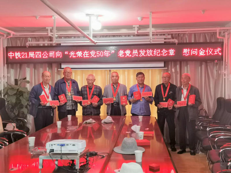6月29日,中鐵二十一局四公司黨委向在蘭州、銀川、西寧等地黨齡達(dá)到50年的離退休老黨員頒發(fā)了“光榮在黨50年”紀(jì)念章,并發(fā)放了特別慰問金,讓老黨員親身感受到了黨組織的關(guān)懷和溫暖。