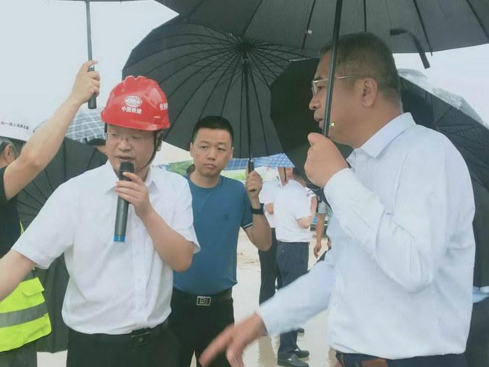 本網陜西寶雞7月2日訊(通訊員 胡志超)寶雞市委副書記、市長楊廣亭冒雨到中鐵二十一局三公司承建的眉太高速渭河特大橋進行調研。