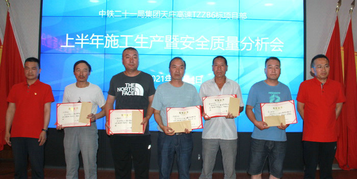 會上,項(xiàng)目各部室負(fù)責(zé)人以PPT形式向大會做半年總結(jié)匯報;副經(jīng)理畢鈺通報了項(xiàng)目6月份施工節(jié)點(diǎn)完成情況;副經(jīng)理吳新會宣讀了《關(guān)于表彰上半年先進(jìn)單位和個人的通知》;安全總監(jiān)鎖福榮對現(xiàn)場文明施工及環(huán)水保工作做了具體的安排部署;總工程師趙強(qiáng)下達(dá)了項(xiàng)目7月份施工計劃;副書記錢海通報了路基及防護(hù)工程質(zhì)量處罰文件并對農(nóng)民工工資發(fā)放等工作進(jìn)行安排部署。