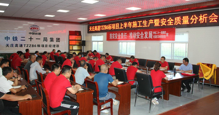 本網(wǎng)甘肅天水7月5日訊(通訊員 彭英 周嘉豪)7月4日晚,中鐵二十一局天莊高速TZZB6標(biāo)項(xiàng)目召開了上半年施工生產(chǎn)暨安全質(zhì)量分析會,項(xiàng)目副部室以上領(lǐng)導(dǎo),工區(qū)經(jīng)理、技術(shù)主管,拌合站、試驗(yàn)室、測量班負(fù)責(zé)人,施工隊負(fù)責(zé)人40余人參加了會議,會議由項(xiàng)目總工趙強(qiáng)主持。