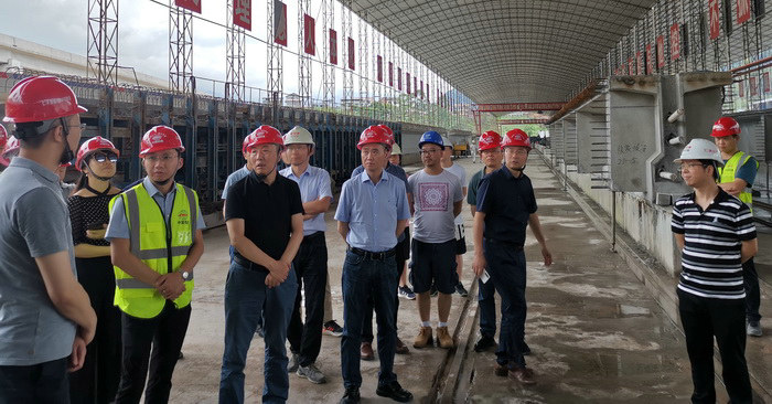 項(xiàng)目負(fù)責(zé)人曾厚豐(前左二)介紹情況 據(jù)現(xiàn)場(chǎng)負(fù)責(zé)人介紹,傳統(tǒng)的高速公路建設(shè)工地,預(yù)制梁場(chǎng)、鋼筋加工棚等大臨設(shè)施均是露天設(shè)置,既不利于施工產(chǎn)品的品質(zhì)把控,工人在露天的環(huán)境中工作又容易產(chǎn)生安全和健康隱患。為了徹底解決這一難題,項(xiàng)目部對(duì)大臨設(shè)施配置進(jìn)行了改進(jìn),建成封閉式的鋼筋加工棚和預(yù)制梁場(chǎng),封閉式的場(chǎng)站不僅改善了一線工人的作業(yè)環(huán)境,也為內(nèi)部技術(shù)創(chuàng)新創(chuàng)造了條件。同時(shí),項(xiàng)目秉承“優(yōu)質(zhì)高效、安全廉潔、綠色環(huán)保、科技創(chuàng)新”的項(xiàng)目建設(shè)理念,按照“機(jī)械化、工廠化、專業(yè)化、信息化”的管理思路大力推進(jìn)鋼筋加工和預(yù)制梁場(chǎng)品牌建設(shè),積極推動(dòng)高速公路建設(shè)施工一線“加工場(chǎng)”向“加工廠”轉(zhuǎn)變。