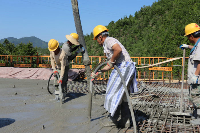 柏溪互通主線橋共4聯(lián)左右幅各7跨跨現(xiàn)澆梁,全長216米,為全線重點(diǎn)控制工程之一,采用支架連續(xù)現(xiàn)澆方法施工,經(jīng)過全體參建人員戰(zhàn)高溫、斗酷暑連續(xù)奮戰(zhàn)40個小時,本次澆筑混凝土1430立方米,全橋累計澆筑5116立方米。