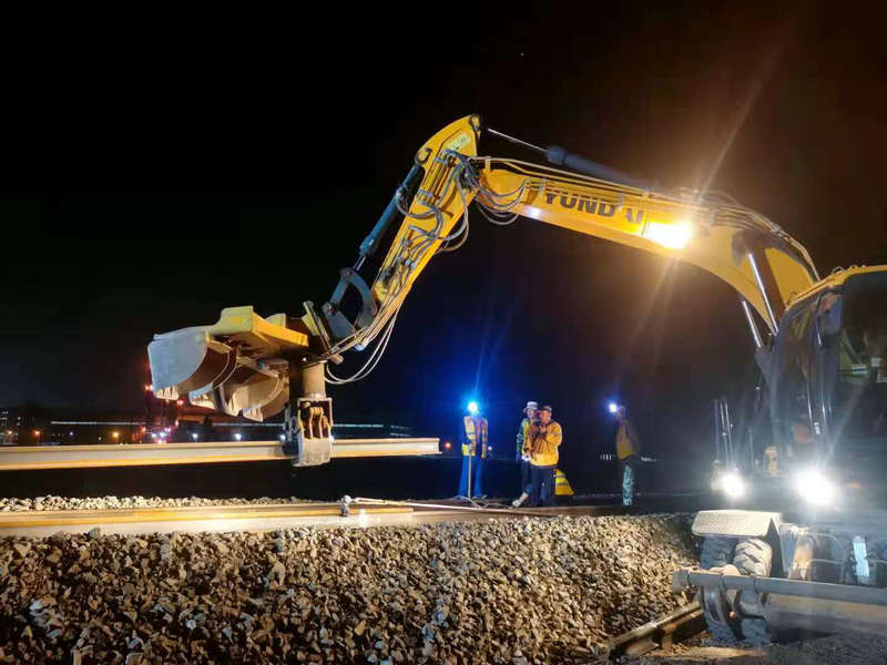 為確保首次長軌卸車作業(yè)能夠安全、正點完成,項目部超前籌備,從安全防控、人員配備、作業(yè)流程、應(yīng)急保障等多個方面和環(huán)節(jié)進行了精心準備;加強與設(shè)備配合單位的溝通協(xié)調(diào),通過現(xiàn)場踏勘、演練、風(fēng)險研判等方式,明確作業(yè)流程和安全負責(zé)人,對施工作業(yè)中存在的重難點問題進行反復(fù)推敲討論,最終研究確定卸軌方案。項目部針對每個施工環(huán)節(jié)中可能發(fā)生的突發(fā)情況制定了詳細的應(yīng)急預(yù)案,確保卸長軌封鎖施工順利實施,卸軌期間,項目班子成員與相關(guān)技術(shù)人員現(xiàn)場全程盯控,有序指揮,通過全員團結(jié)協(xié)作,最終確保卸軌作業(yè)任務(wù)順利完成。