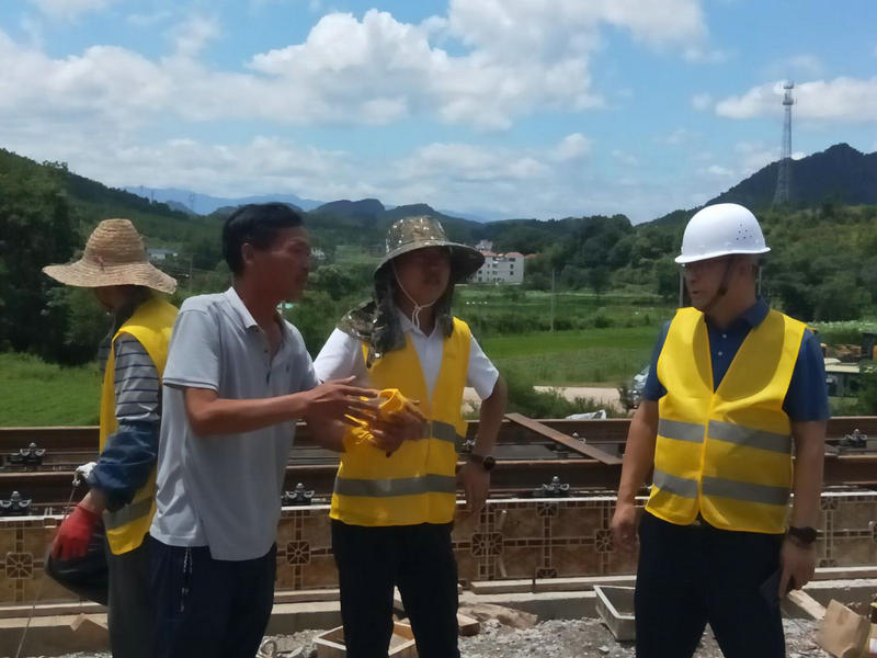 興泉鐵路工期緊任務(wù)重,進入7月江西氣溫炎熱,項目部職工未實行夏季作息時間,全體職工沖在一線,加班加點推進工程進度。目前,工程施工正處在關(guān)鍵時刻,段榮福到施工一線走訪了解了職工生活所需,有無困難需要幫助解決,向職工表達了親切的問候和關(guān)懷,并為職工送去了“夏服、西瓜、豬肉”等慰問品。