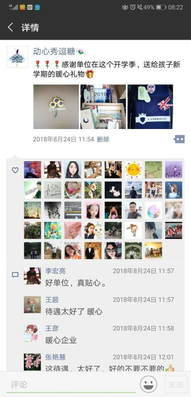 “感謝單位在這個(gè)開(kāi)學(xué)季,送給孩子新學(xué)期的暖心禮物”,“背著我們單位工會(huì)送的開(kāi)學(xué)大禮包上學(xué)去啦!寶寶心情美美的!媽媽心里暖暖的!”這兩天,中國(guó)鐵建大橋局建筑公司的職工們紛紛在朋友圈內(nèi)“秀”起了公司為孩子們準(zhǔn)備的“開(kāi)學(xué)季大禮包”,瞬間感受到了“爆棚”的獲得感。