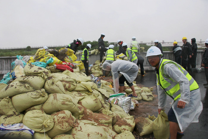 期間,接到鎮(zhèn)海區(qū)防臺風加固海堤任務后,項目部出動200人和多臺車輛冒著狂風暴雨到達指定地點,兵分三路,裝沙袋、往海堤上堆碼沙袋,從上午10點到晚上7點,連續(xù)在風雨里作戰(zhàn)10個小時,圓滿完成了加固海堤任務,在關鍵時刻彰顯了中國鐵建敢打硬仗、戰(zhàn)而必勝的鐵軍精神。