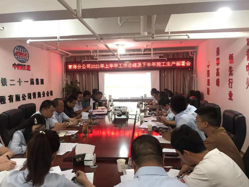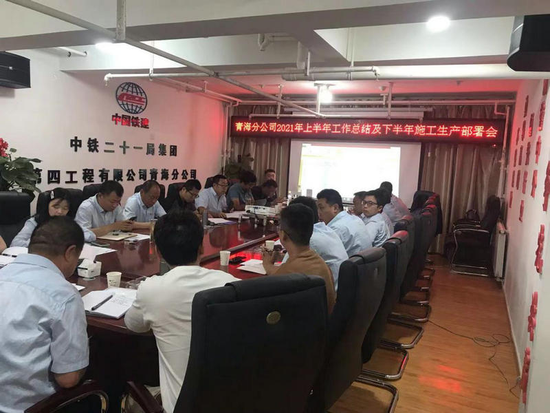 近日,中鐵二十一局四公司青海分公司召開了2021年上半年工作總結(jié)及下半年施工生產(chǎn)部署會,分公司領(lǐng)導班子及各攪拌站站長、砂石料廠廠長、各部室負責人參加了會議。