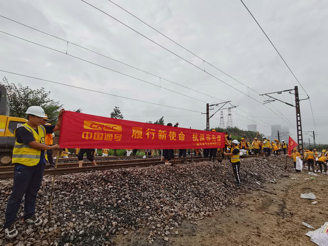 7月22日-28日,在特大暴雨造成嚴(yán)重城市內(nèi)澇,隴海鐵路、瓦日鐵路行車受阻后,在通號(hào)電氣化局集中統(tǒng)一部署下,鄭鐵公司黨委迅速響應(yīng),成立并派出多支救援搶險(xiǎn)力量,積極投入隴海鐵路搶修工作中。