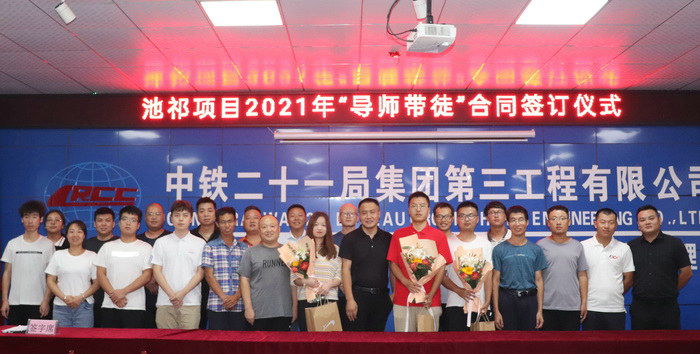 圖為導(dǎo)師帶徒簽字儀式 座談會(huì)上,項(xiàng)目經(jīng)理張一平代表全體參建員工對(duì)新學(xué)員入職表示熱烈歡迎,你們的到來為項(xiàng)目注入了新鮮血液,增添了發(fā)展的后勁與活力,并勉勵(lì)新學(xué)員盡快完成從學(xué)生到企業(yè)員工的角色轉(zhuǎn)變,早日融入項(xiàng)目新的群體之中,規(guī)劃好人生目標(biāo),樹立遠(yuǎn)大志向,敢于擔(dān)當(dāng)。并詳細(xì)介紹了公司的發(fā)展史,講述了鐵道兵的光輝歷史以及鐵道兵在抗美援朝的戰(zhàn)爭(zhēng)年代英勇頑強(qiáng)、不畏犧牲、不畏艱苦、可歌可泣的動(dòng)人故事。在和平年代參加鐵路建設(shè)的偉大壯舉和不朽業(yè)績(jī),要求把發(fā)揚(yáng)鐵道兵的光榮傳統(tǒng)和鐵道兵精神一代代傳承下去。