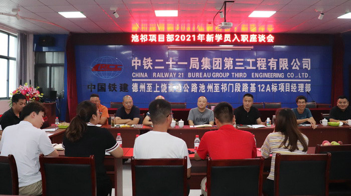 本網(wǎng)安徽黃山訊(通訊員 王克亮、張志春)7月27日下午,中鐵二十一局三公司池祁項(xiàng)目部四樓會(huì)議室掌聲陣陣、和諧融洽、氛圍輕松,正在舉辦2021年度新學(xué)員入職座談會(huì)。會(huì)議由項(xiàng)目黨支部書記杜強(qiáng)主持,項(xiàng)目經(jīng)理張一平、總工程師龔沛基、各部室負(fù)責(zé)人及往屆學(xué)員和導(dǎo)師參加了歡迎座談會(huì)。
