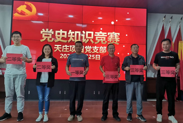 圖為獲獎人員上臺領獎 學史可鑒今、讀史可堅志、讀史可自強、讀史可勵行。本次黨史知識競賽的開展,充分展現(xiàn)了項目全體人員“以賽促學、以學促行、比學趕超”的濃厚學習氛圍。使得全體黨員同志對黨的歷史、黨的理論路線、黨的各項方針政策又有了更深層次的了解。