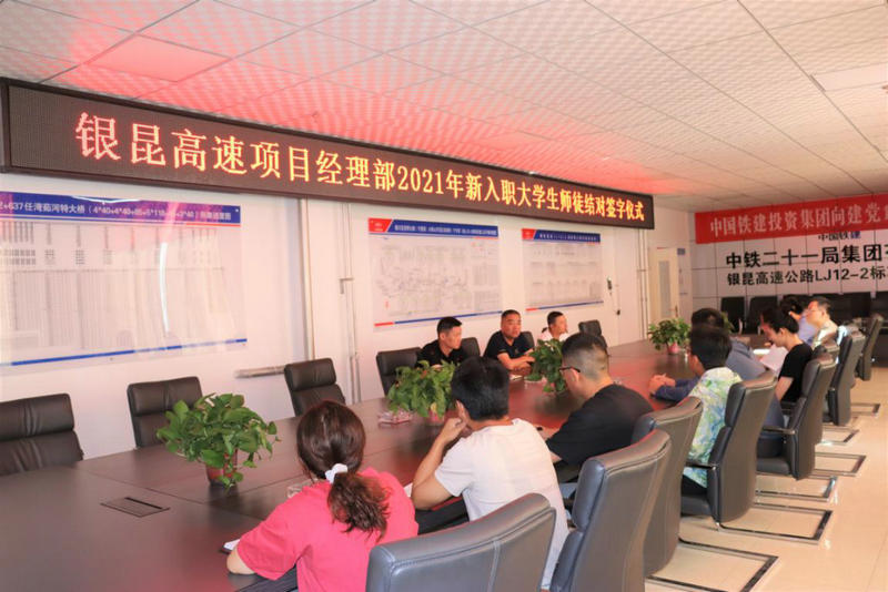 為進一步加快新入職員工的成長,加強對新入職新員工的能力培養(yǎng),7月31日,中鐵二十一局銀昆高速公路LJ12-2標項目經(jīng)理部開展了2021年“師徒攜手·共促成長”主題師徒結(jié)對簽約儀式。