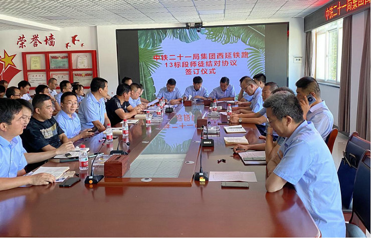 8月1日,中鐵二十一局西延鐵路13標(biāo)項(xiàng)目在會(huì)議室舉行了師徒結(jié)對簽訂儀式,項(xiàng)目部領(lǐng)導(dǎo)班子、工區(qū)經(jīng)理、各部室負(fù)責(zé)人及全體新入職員工參加了儀式。