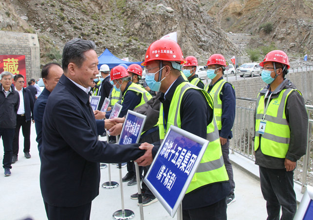 調(diào)研期間,李小鵬一行親切慰問了業(yè)主、設(shè)計、監(jiān)理及施工單位代表,當(dāng)了解到施工單位絕大部分是中國鐵建旗下各集團公司時,稱贊中國鐵建是一支有著輝煌業(yè)績的鐵軍,望各單位再接再厲發(fā)揚鐵軍精神建設(shè)好拉日公路,為自治區(qū)發(fā)展建設(shè)貢獻力量。