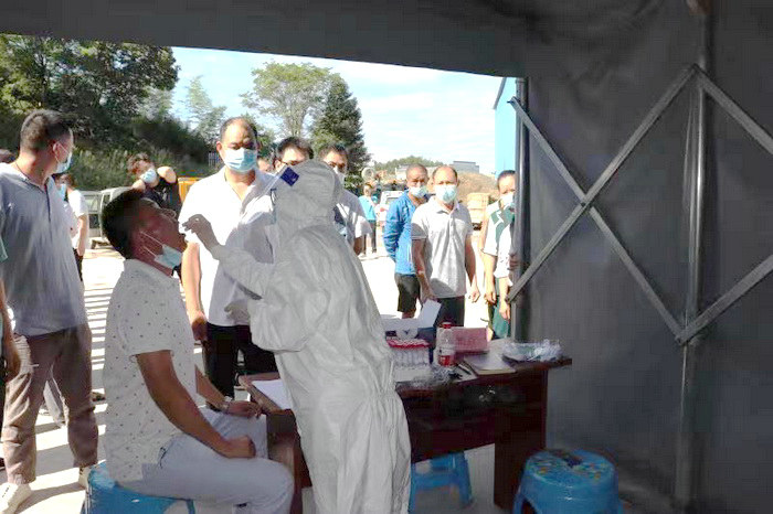 圖為醫(yī)護人員正進行核酸檢測