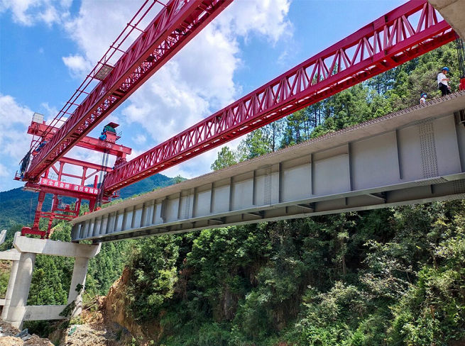 本報(bào)江西上饒訊(孫臣領(lǐng) 張曉歡 林鵬)8月7日,目前國內(nèi)跨度最大的60米π型鋼混疊合梁,在中鐵二十一局集團(tuán)三公司承建的德(州)上(饒)高速公路贛皖界至婺源段A1標(biāo)南山路特大橋首片梁順利架設(shè)成功,標(biāo)志著國內(nèi)大跨度鋼混疊合梁制、架梁技術(shù)向前邁出了一大步。