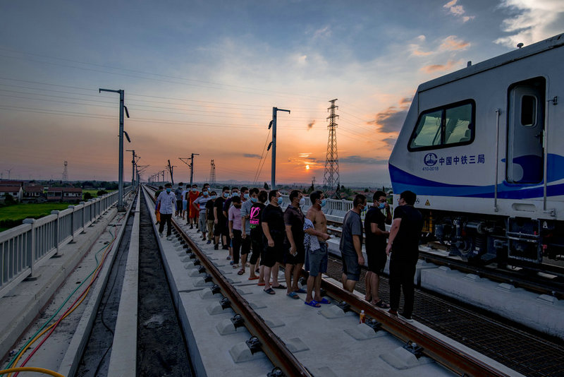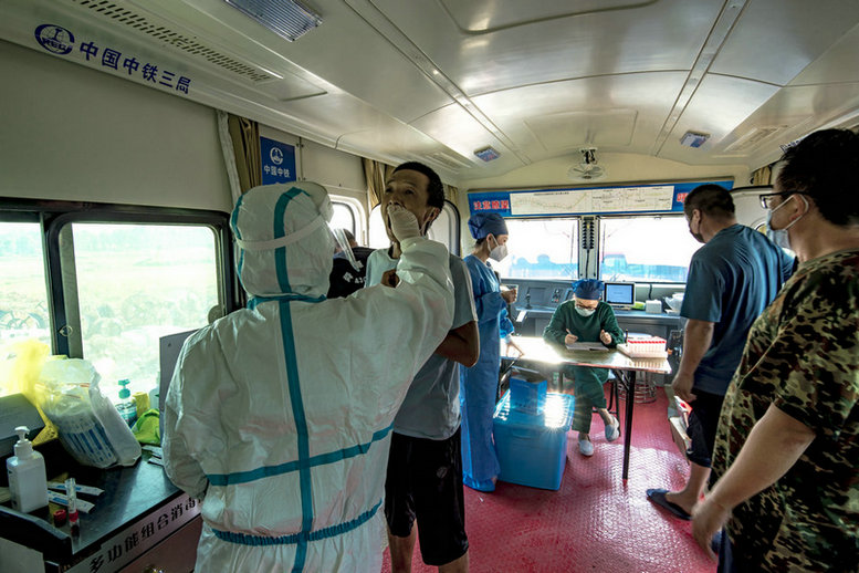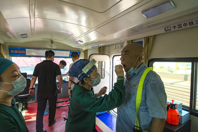 中鐵三局線橋公司黃黃鐵路項(xiàng)目核酸檢測專列??刻I春南站檢測瞬間