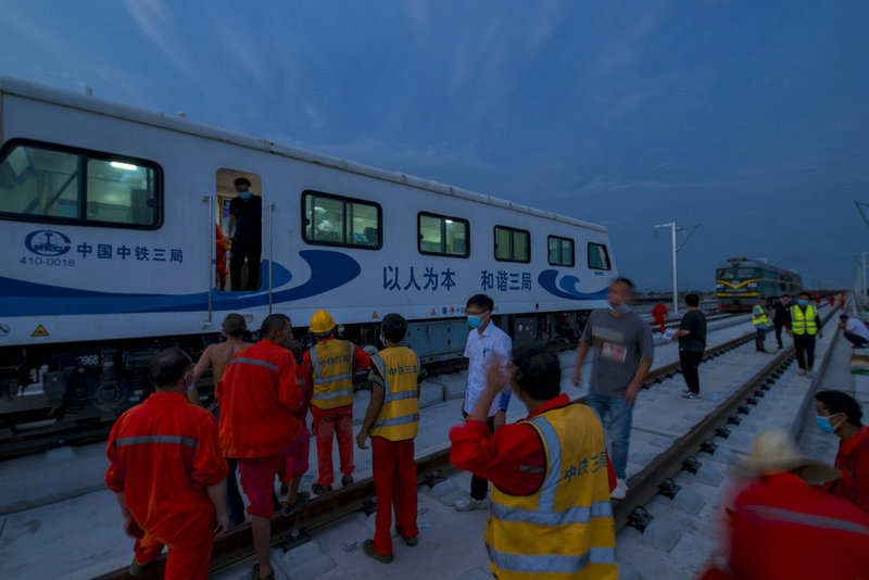 中鐵三局線橋公司黃黃鐵路項(xiàng)目核酸檢測專列在黃黃鐵路濯港線路所檢測點(diǎn)