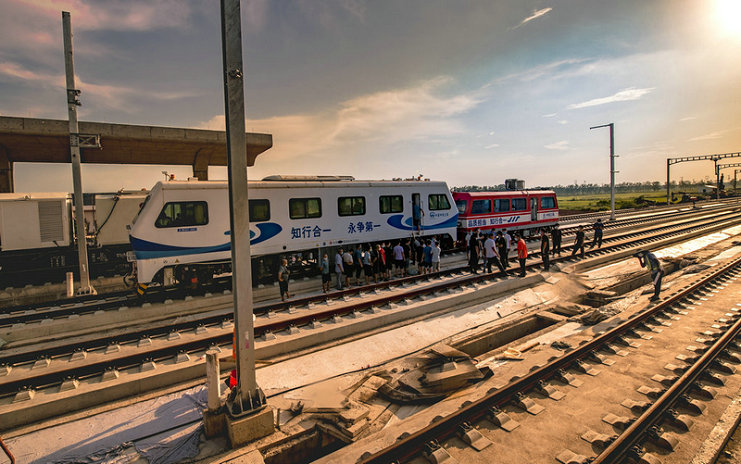 新建黃黃鐵路途經(jīng)黃岡市區(qū)、浠水縣、蘄春縣、武穴市、黃梅縣,全長125公里。中鐵三局線橋公司承擔(dān)黃黃鐵路2標(biāo)段架梁以及全線制枕、鋪軌、鋼軌焊接、放散鎖定等任務(wù),其中單線鋪軌249公里,鋪設(shè)五座車站共計(jì)60組無砟道岔。目前黃黃高鐵全線鋪軌任務(wù)到了沖刺年底開通運(yùn)營最關(guān)鍵的攻堅(jiān)階段。