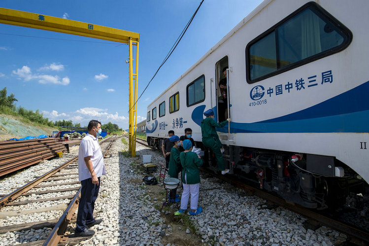 浠水縣人民醫(yī)院醫(yī)務(wù)工作者登上專列奔赴黃黃鐵路建設(shè)一線