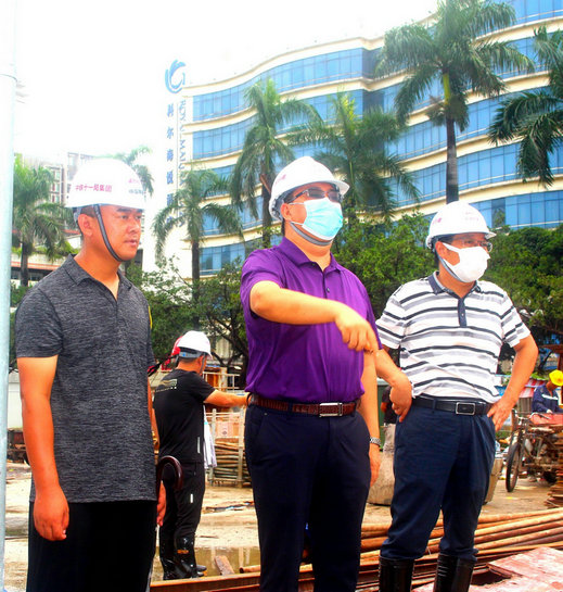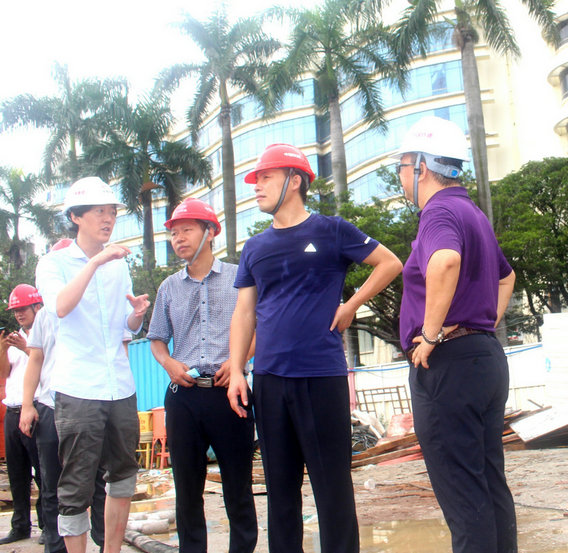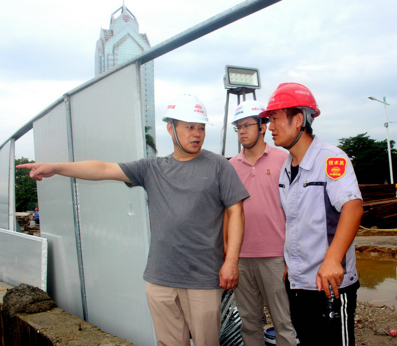 項(xiàng)目經(jīng)理李兵(左2)每天深入現(xiàn)場(chǎng),做好巡查、督導(dǎo)、管控、防汛,協(xié)調(diào)等工作,及對(duì)解決施工中出現(xiàn)的困難和問(wèn)題,確保施工生產(chǎn)安全優(yōu)質(zhì)有序穩(wěn)步推進(jìn),節(jié)點(diǎn)計(jì)劃目標(biāo)逐個(gè)實(shí)現(xiàn)。