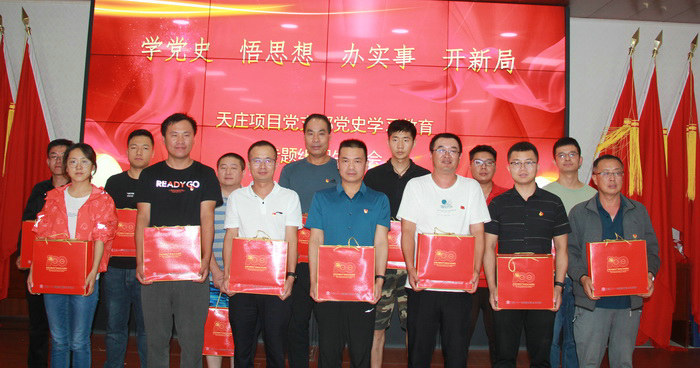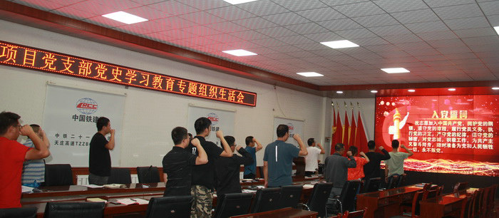 黨史學(xué)習(xí)教育專題組織生活會(huì)現(xiàn)場(chǎng) 會(huì)上,全體黨員重溫入黨誓詞;項(xiàng)目黨支部副書(shū)記錢海向大會(huì)報(bào)告了支部半年來(lái)開(kāi)展黨史學(xué)習(xí)教育的情況,通報(bào)了黨支部委員會(huì)檢視問(wèn)題的情況;為全體黨員發(fā)放了集團(tuán)公司黨委建黨100周年紀(jì)念品。