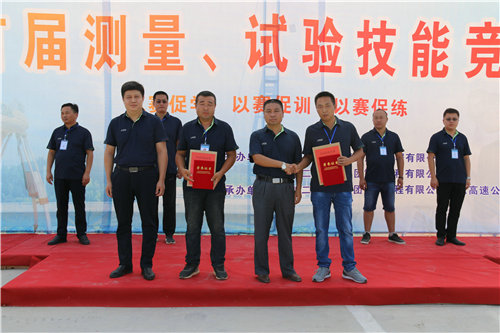 比賽中,每位參賽選手都將自己在平時(shí)積累下來(lái)的技術(shù)知識(shí)運(yùn)用到了實(shí)處,展現(xiàn)了積極應(yīng)對(duì)、嫻熟操作的優(yōu)良素質(zhì)以及賽友誼、賽風(fēng)格、賽技能的精神風(fēng)貌。經(jīng)過(guò)激烈的角逐,安慈高速公路項(xiàng)目部技術(shù)主管李健獲得測(cè)量組一等獎(jiǎng);黔張常項(xiàng)目部測(cè)量隊(duì)長(zhǎng)孟燦獲得測(cè)量組二等獎(jiǎng);昌贛項(xiàng)目部測(cè)量副隊(duì)長(zhǎng)潘官忠獲得測(cè)量組三等獎(jiǎng);昌贛項(xiàng)目試驗(yàn)員湯文獲得試驗(yàn)組一等獎(jiǎng);銀西高鐵項(xiàng)目試驗(yàn)員姜攀獲得試驗(yàn)組二等獎(jiǎng),安慈高速項(xiàng)目部檢測(cè)員高世常獲得試驗(yàn)組三等獎(jiǎng),對(duì)以上獲得獎(jiǎng)勵(lì)的同志頒發(fā)榮譽(yù)證書(shū)及獎(jiǎng)金。