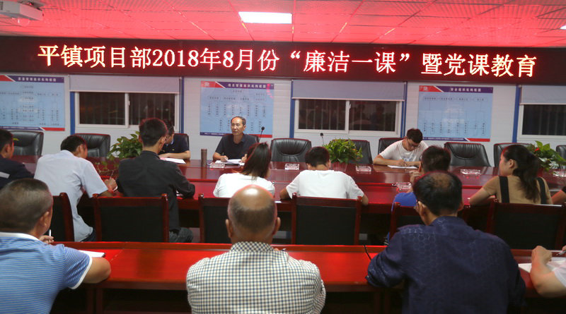 圖為8月份廉潔一課教育在黨課教育學習中,項目書記戴維俊組織黨員學習了《關于印發(fā)中鐵二十一局三公司2018年黨委工作要點》的通知,并傳達學習集團公司第三次黨代會精神。項目總工湯寶劍傳達了認真做好黨員培訓教育工作的通知,項目書記戴維俊組織學習“關于進一步規(guī)范項目黨組織工作有關要求的通知”。