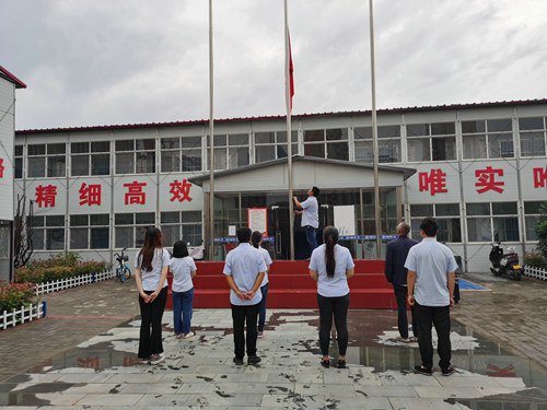 上午八時,在涇河·薈智廣場項目部駐地前升國旗儀式按時舉行,當雄壯嘹亮的國歌想起時,項目部黨員及管理人員近20人在支部副書記的帶領(lǐng)下,對著國旗行注目禮,看著徐徐升起的五星紅旗,大家自發(fā)地哼唱起國歌,現(xiàn)場莊嚴肅穆,每個人的愛國情懷和為企業(yè)發(fā)展多做貢獻的責任感和使命感油然而生。