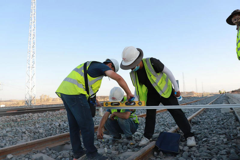 在中鐵二十一局管段內(nèi)進(jìn)行靜態(tài)驗(yàn)收時(shí),專(zhuān)業(yè)驗(yàn)收組對(duì)各項(xiàng)工程仔細(xì)驗(yàn)收后,軌道工程驗(yàn)收組組長(zhǎng)宋世強(qiáng)對(duì)已完工軌道的施工質(zhì)量、鋪設(shè)速度給予了高度肯定,并表示,梧桐槽子至沙地站的25公里線路驗(yàn)收,高標(biāo)準(zhǔn)、高質(zhì)量時(shí)刻刷新著我們對(duì)中國(guó)鐵建速度的新認(rèn)知。