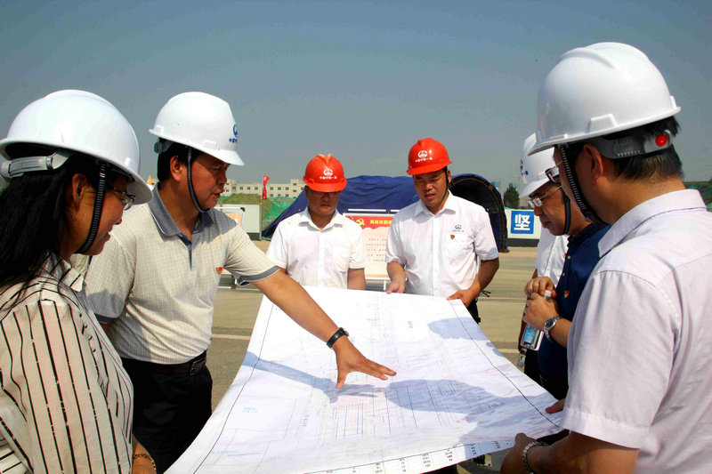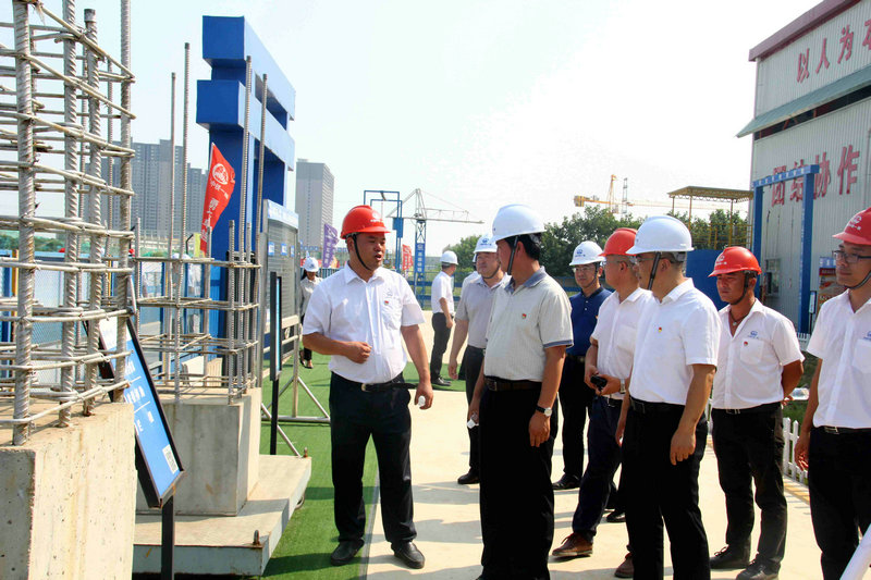 啟動儀式結束后,屈占權處長一行和建安公司參會領導深入施工現(xiàn)場進行經驗交流,同時,對項目安全質量體驗園區(qū)、創(chuàng)新園區(qū)、VR體驗館及分部展板進行觀看,并詳細詢問了解施工生產情況,對施工質量、進度、安全、環(huán)保方面都予以肯定和認可。