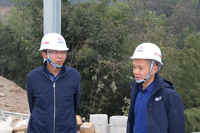 圖2:公司執(zhí)行董事、總經(jīng)理劉守成(右)聽取公司副總經(jīng)理兼常益長(zhǎng)一分部項(xiàng)目經(jīng)理陳冠琪(左)對(duì)安全、質(zhì)量、進(jìn)度管理等問題做詳細(xì)匯報(bào)