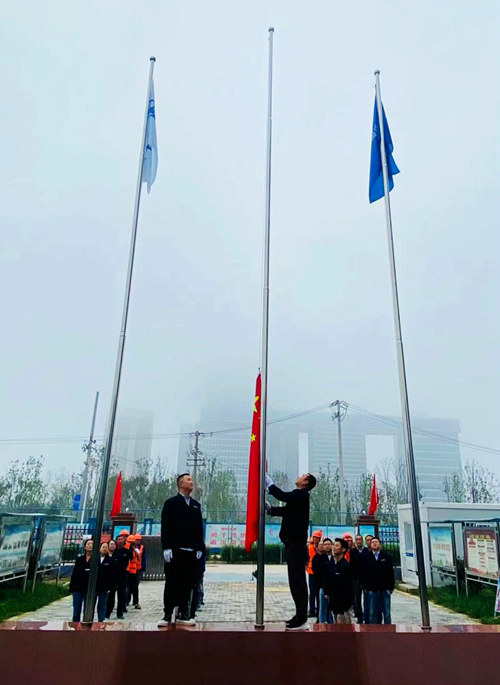 當天,共計175名基層項目職工踴躍參加到了升國旗儀式當中,大家整齊列隊,面向國旗莊嚴致敬,目送鮮艷的五星紅旗冉冉升起,同時獻上深情的祝福。儀式中,每一位職工的愛國之情油然而生大家齊聲哼唱《國歌》,唱出對對偉大祖國的美好祝愿,同時也表達出對企業(yè)的熱愛。