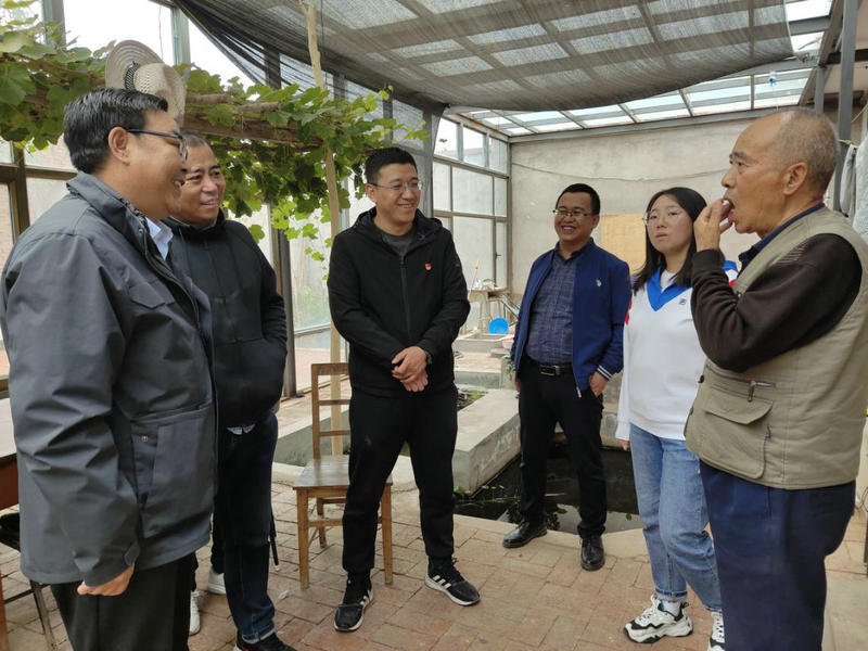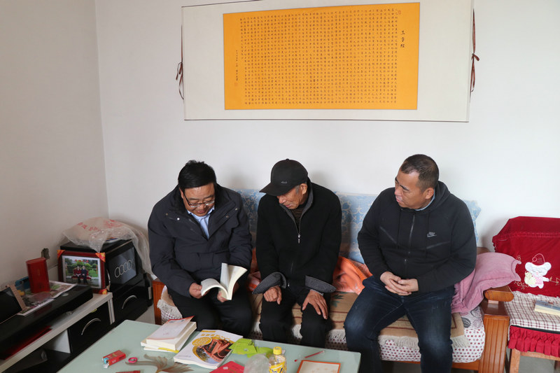 在留守老人張惠源家中,得知老人是一名退伍多年的老共產(chǎn)黨員,同樣是軍人出生的中鐵二十一局四公司蘭張三四線鐵路項目黨支部書記祁克義、永登縣勞動監(jiān)察大隊黨支部書記大隊長劉恩軍與老人一起回憶軍營里的故事,當(dāng)看到老人茶幾上習(xí)近平總書記《論中國共產(chǎn)黨歷史》后,與老人展開了關(guān)于學(xué)習(xí)黨史心得體會的交流。