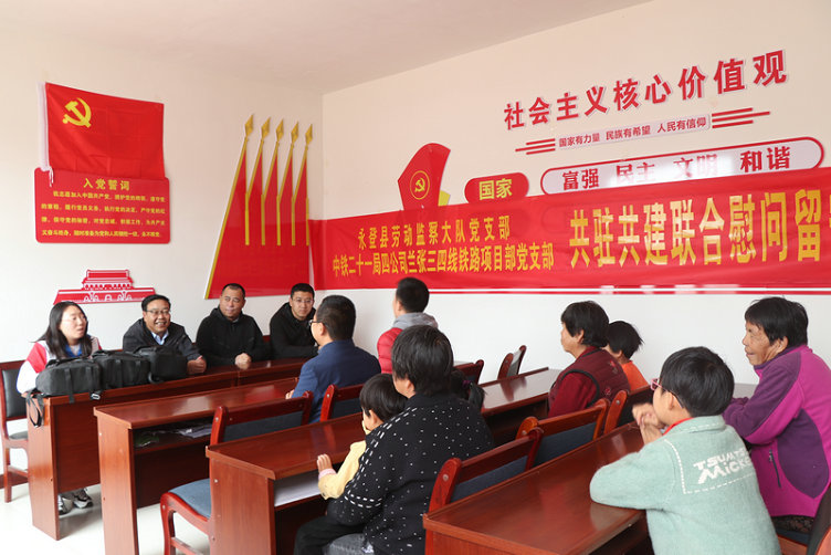 10月12日,中鐵二十一局四公司蘭張三四線鐵路項目黨支部聯(lián)合永登縣勞動監(jiān)察大隊黨支部,前往永登縣苦水鎮(zhèn)寺灘村開展共駐共建慰問活動。
