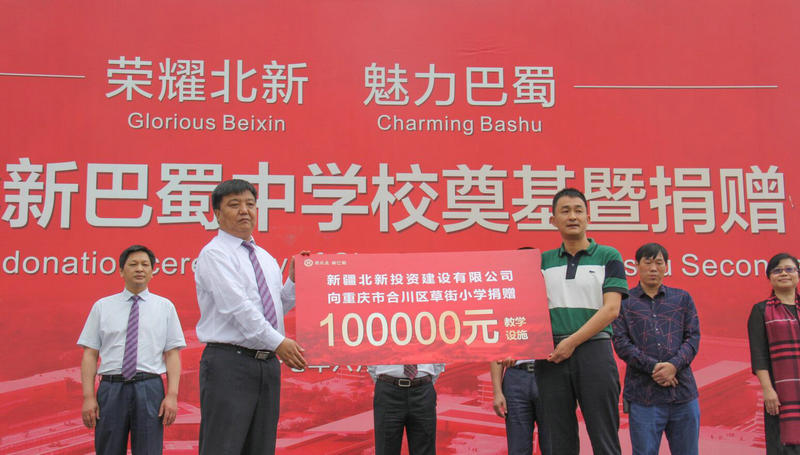 2010年6月,北新投資公司合川草街示范園項目順利開工,開工儀式上將40余萬元捐贈給了當地小學和敬老院。在建設項目的同時,公司連續(xù)多年對合川草街當地小學的困難兒童進行捐資捐物,幫他們度過難關。2011年9月,所屬重慶蘊豐建設公司毅然號召公司高管一對一向合川草街小學的10名留守兒童每人捐贈1000元,并承諾負擔10名孩子就讀小學的一切費用。2017年6月16日,在重慶北新巴蜀中學奠基儀式上,北新投資公司再向重慶市合川區(qū)草街小學捐贈價值十萬元的教學設施,為促進區(qū)域教育產業(yè)提速升級和社會經濟繁榮發(fā)展貢獻力量。