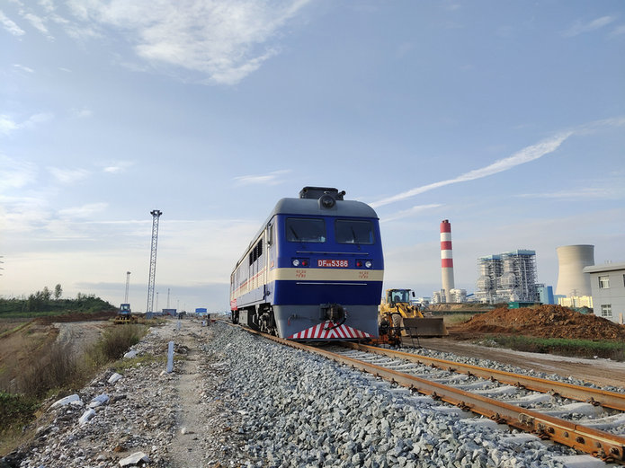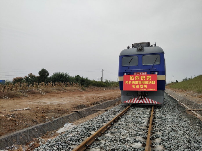 東風(fēng)8B機車緩緩駛來,行走在內(nèi)鄉(xiāng)鐵路專用線的軌道上,在歷經(jīng)2天的要點作業(yè)后,圓滿完成了全長6.056公里線路的軋道作業(yè),這也標(biāo)志著內(nèi)鄉(xiāng)鐵路專用線項目已具備列車運行條件。