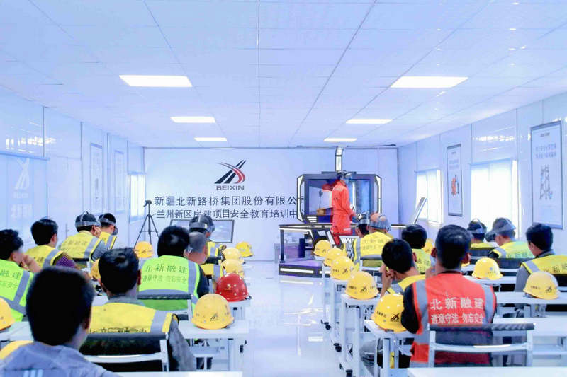 為規(guī)范施工作業(yè)人員操作流程,使其掌握正確方式方法,該項(xiàng)目劃地200平方米建設(shè)了安全綜合體驗(yàn)館,開啟“操作—體驗(yàn)—領(lǐng)悟”的隱患“預(yù)防”新模式,設(shè)置了安全帽撞擊、滅火器使用、綜合用電、電焊作業(yè)、鋼絲繩、現(xiàn)場急救六個(gè)體驗(yàn)區(qū)及一個(gè)安全防護(hù)用品展示區(qū)。通過親身體驗(yàn)的方式,讓施工作業(yè)人員從第一視角加深對安全事故的感受和認(rèn)知,改變了以往安全技術(shù)交底單向輸入的被動性,實(shí)現(xiàn)了由“說教式”向“體驗(yàn)式”的轉(zhuǎn)變。此外,項(xiàng)目部引進(jìn)當(dāng)前新興的VR科技,采用虛擬仿真技術(shù)構(gòu)建計(jì)算機(jī)仿真建筑工程施工安全教育系統(tǒng),模擬高處墜落、不戴安全帽被墜物砸頭、基坑坍塌、用電觸電、消防滅火、材料堆放、腳手架坍塌、支模坍塌、起重及機(jī)械傷人等34項(xiàng)內(nèi)容,高度還原安全事故發(fā)生的全過程,更加真實(shí)的創(chuàng)造出一種集視覺、聽覺、觸覺的沉浸式全新警示教育模式。通過強(qiáng)烈的切身感受,更加深刻認(rèn)識違規(guī)操作帶來的嚴(yán)重后果、更加自覺做到“時(shí)時(shí)要安全、人人管安全”。