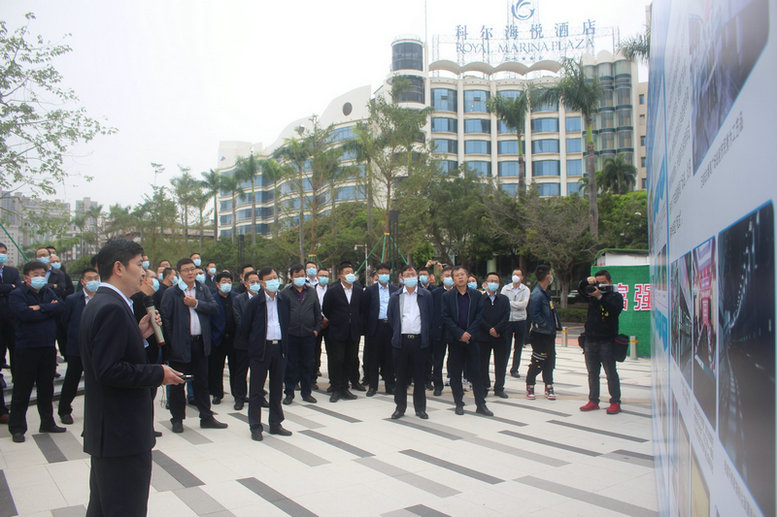 項(xiàng)目經(jīng)理李有道向觀摩團(tuán)介紹番禺廣場(chǎng)站建設(shè)情況